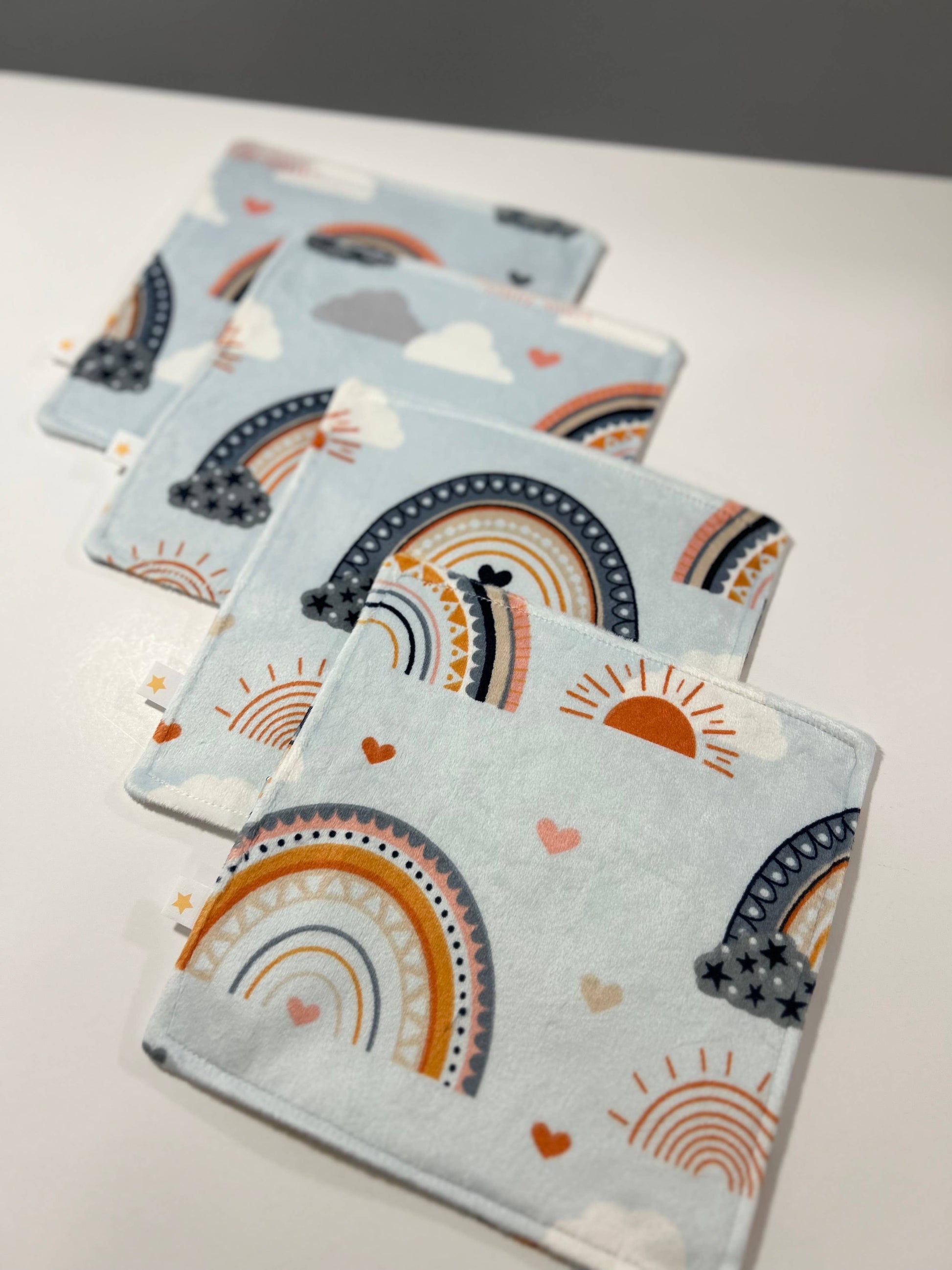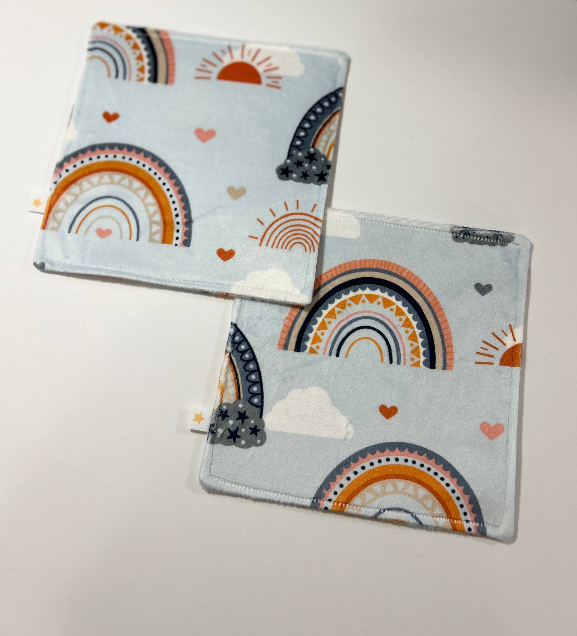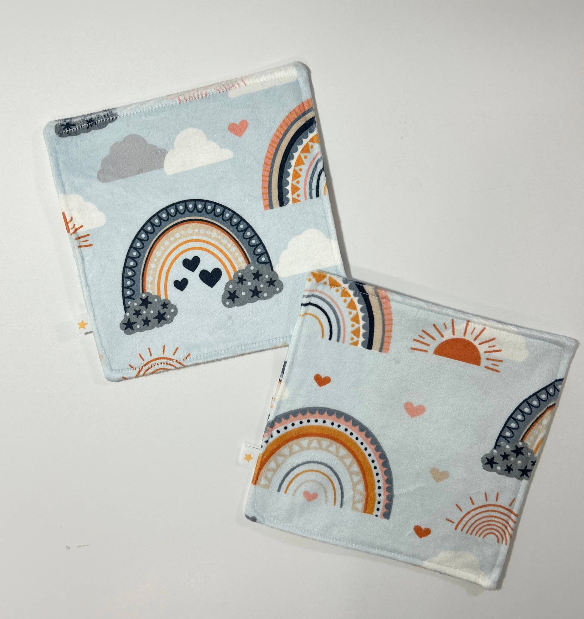Each toy is 7"x7" minky fabric with high quality lab tested and certified crinkle material inside. Our crinkle material meets extensive safety standards called EN71 and CPSIA Certification. It’s machine washable and able to be put on the drier and will not break down or become flimsy over time