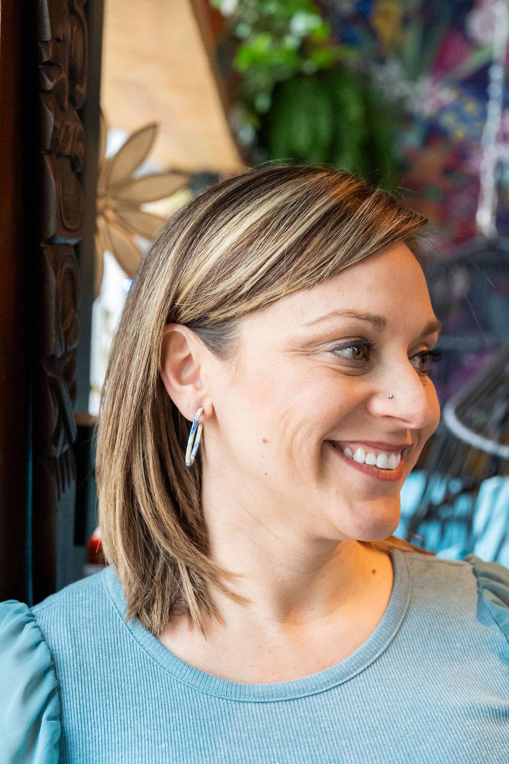 Camy is our medium sized hoop. Our signature ultra lightweight acrylics in gorgeous colors make them the perfect go-to wardrobe staple.