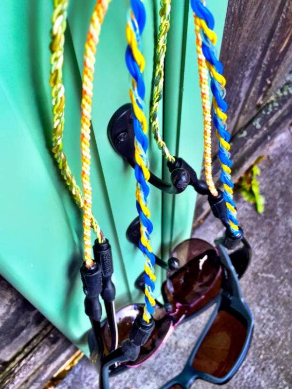 Everyone should have a sunglass retainer on their glasses to help them hold on! We love our recycled fly line retainer, they do not sit on your neck, and they do not get wet or stinky from sweat.
