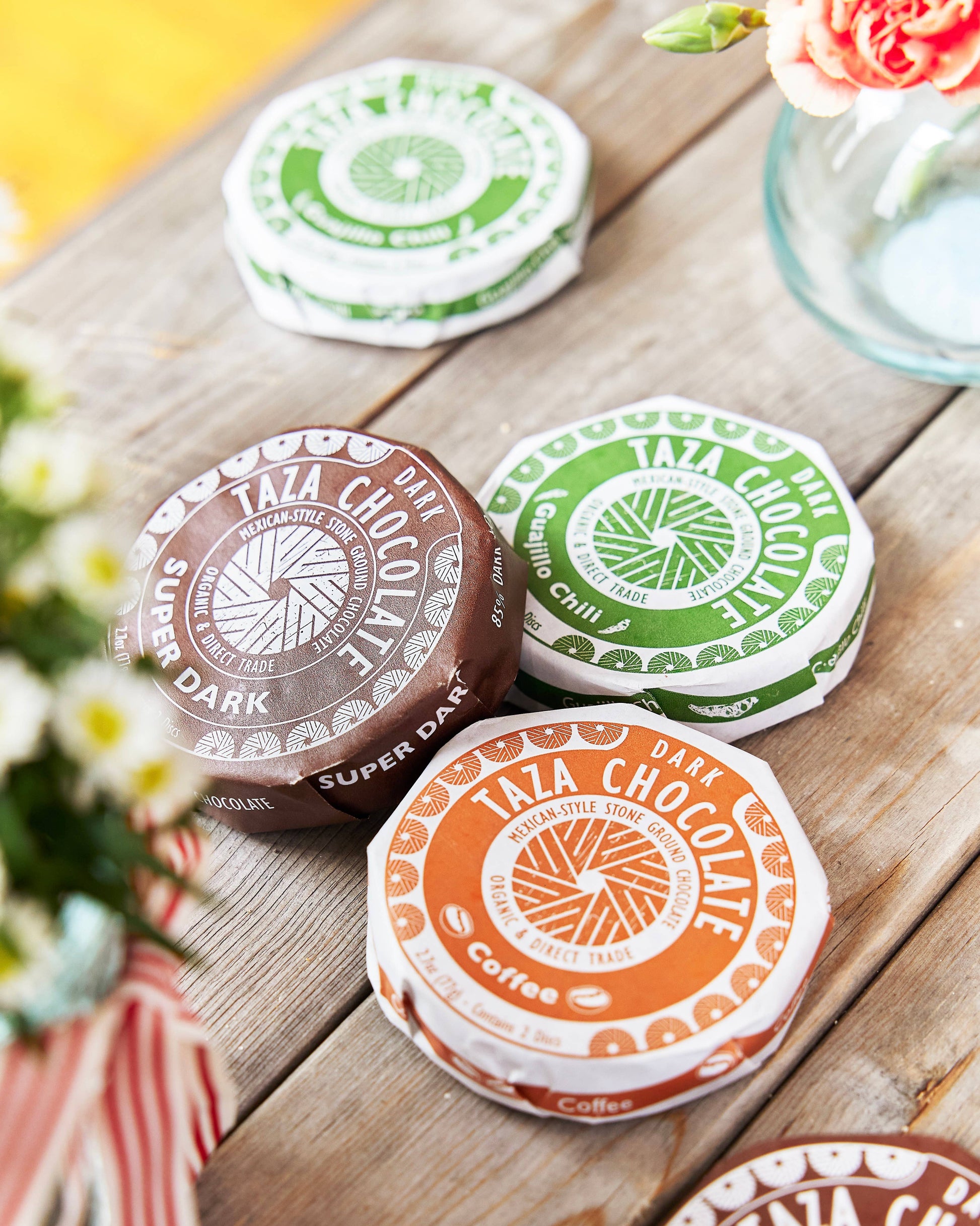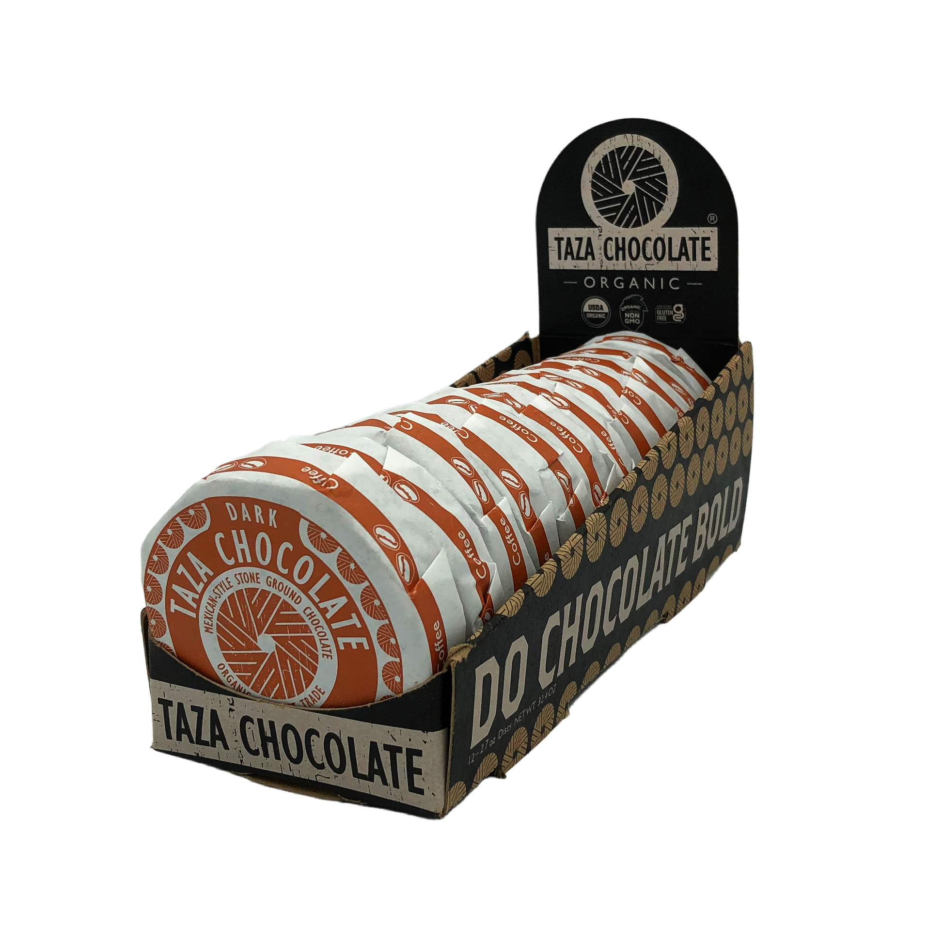 Stone ground, organic Mexican-style dark chocolate discs with fresh roasted coffee beans ground right in. Experience chocolate with true grit! Two discs in each package, perfect for sharing.