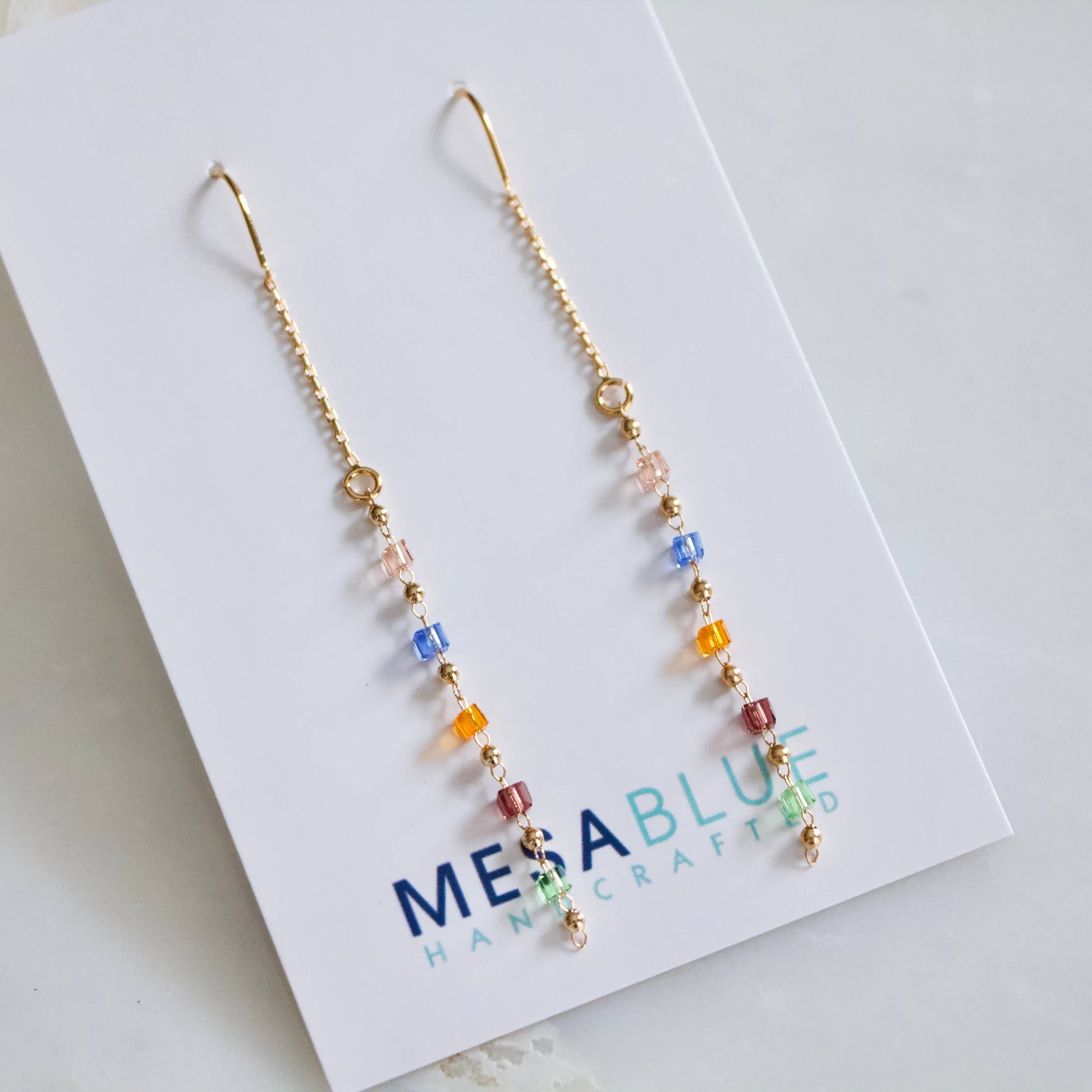 Colorful cube threader earrings