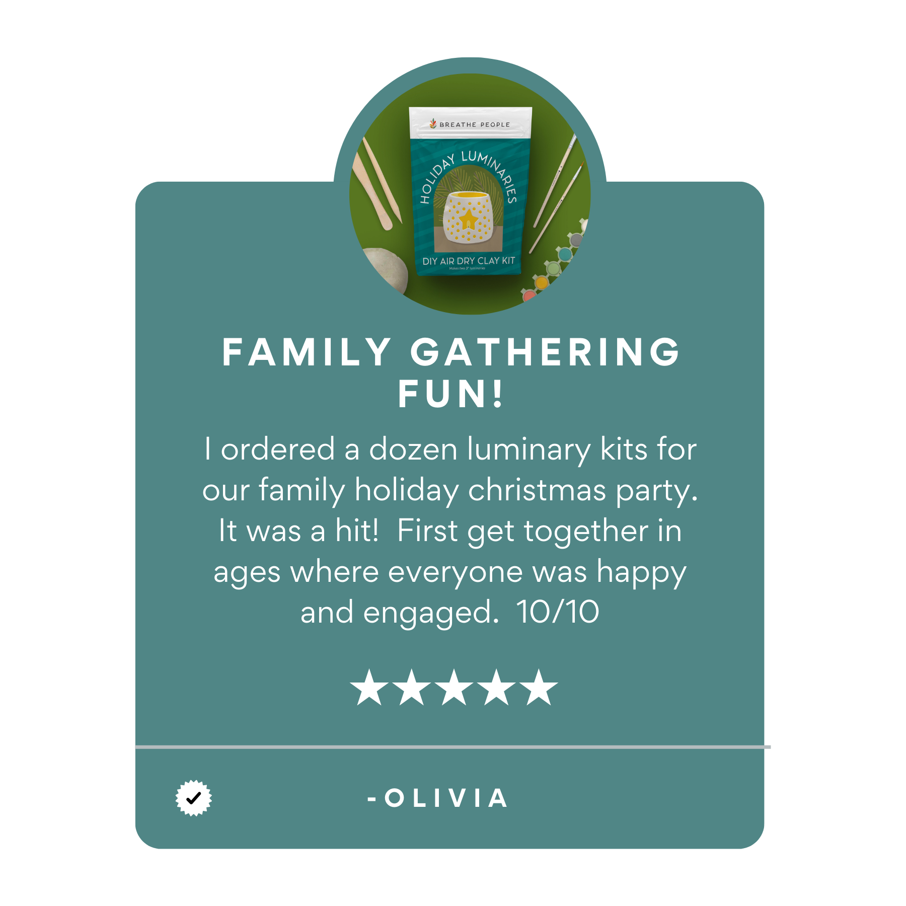 Celebrate the season with creativity, calm, and a touch of handmade magic. The Holiday Glow Luminary Clay Kit is a beginner-friendly way to slow down and craft something meaningful—a glowing clay luminary that adds warmth to your home or makes a heartfelt gift. Whether you're carving solo on a cozy evening or gathering with loved ones, this kit is your invitation to relax, connect, and create something that truly shines.
