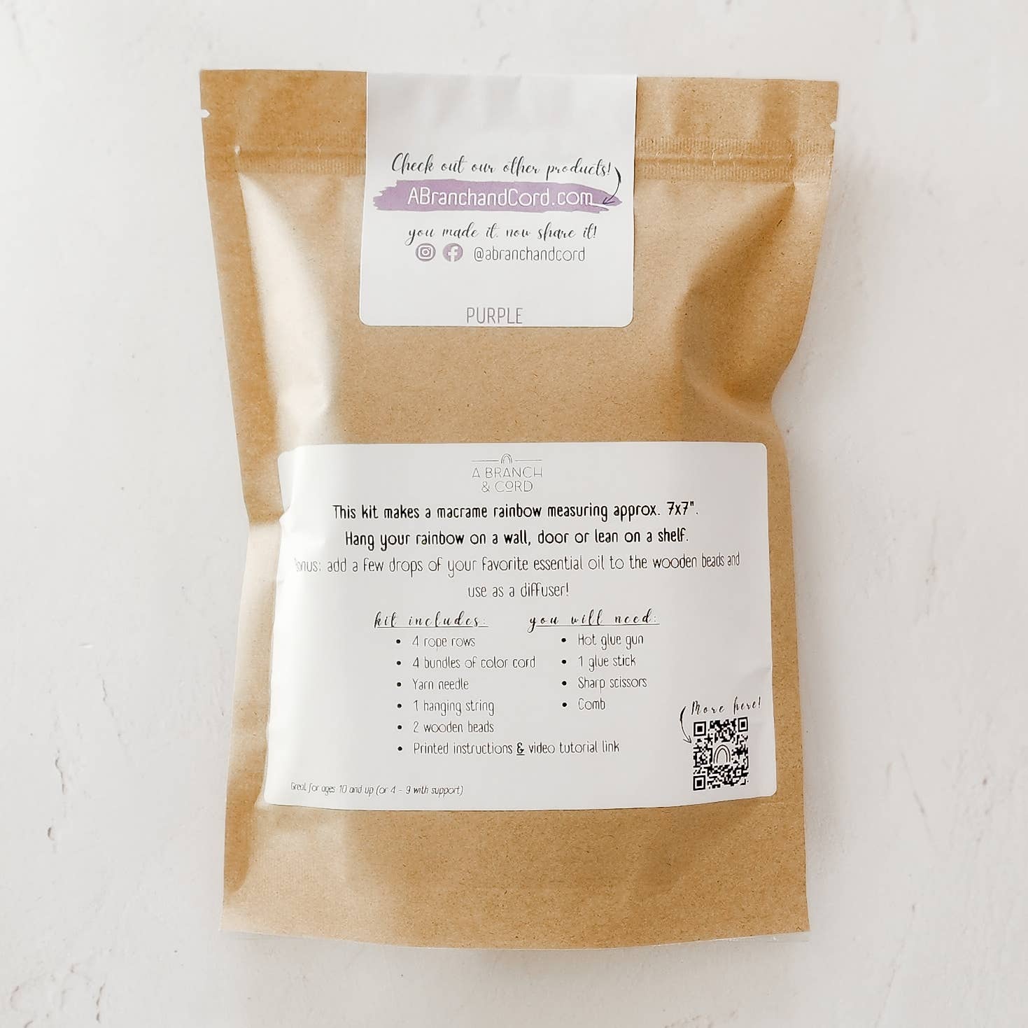 DIY Macrame Rainbow Kits, offer a delightful crafting experience that brings the joy of macrame and vibrant colors together for both adults and children ages 10 and up or 4 - 9 with support. Kits are great for events such as birthday parties, craft nights, wine nights, baby showers, no-school days, Zoom activities, and more!