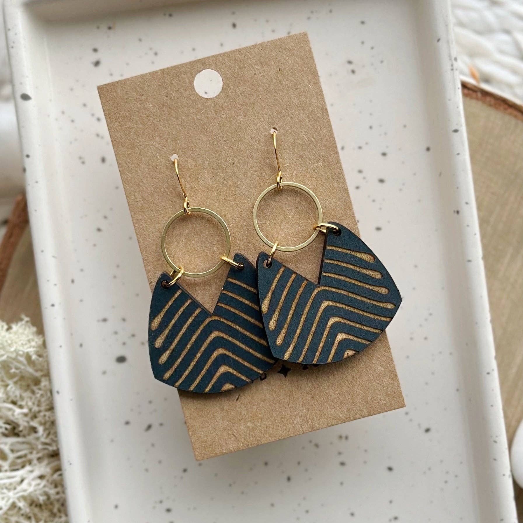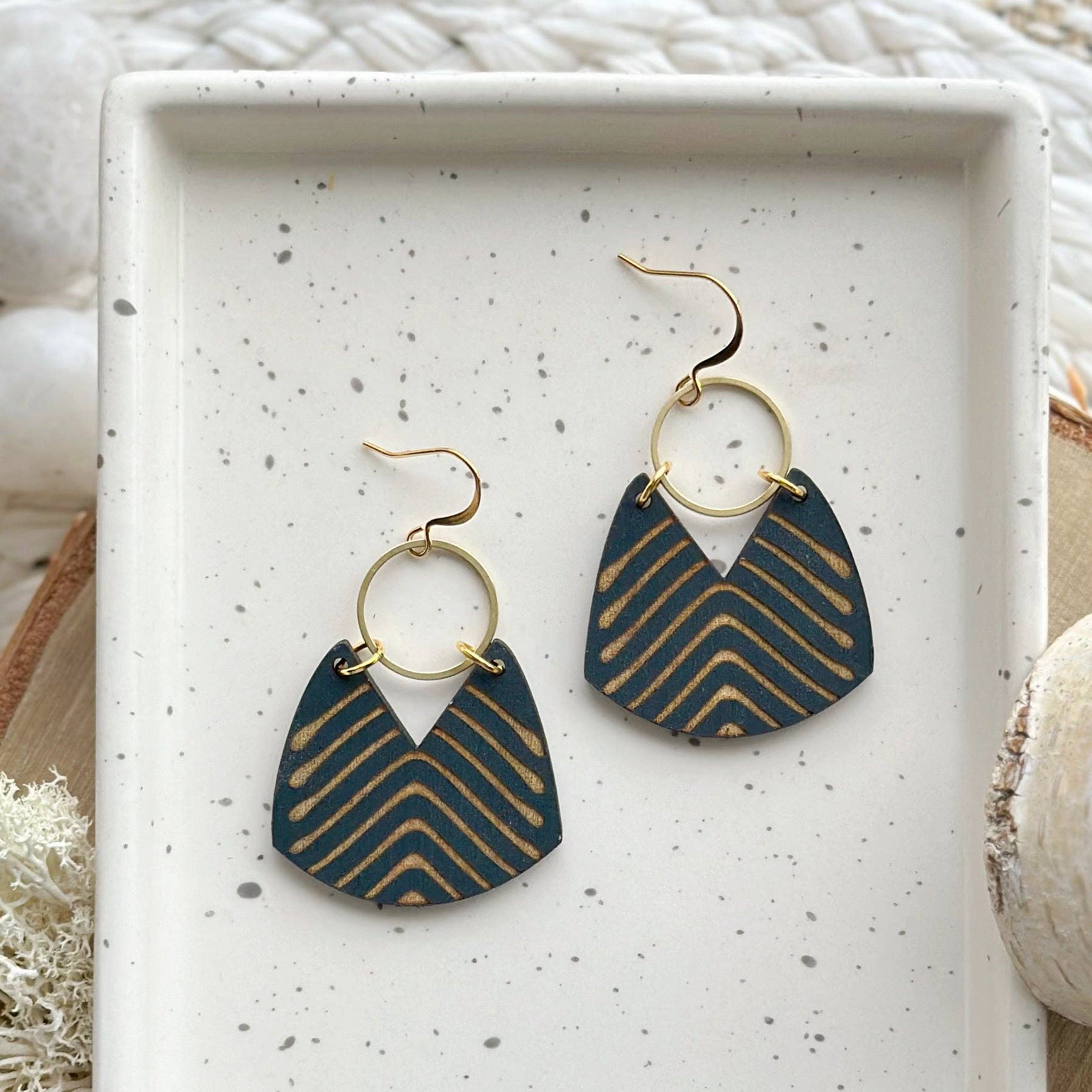 Made from hand painted basswood, raw brass, and hypoallergenic gold-plated brass ear wires. Designed, cut, and assembled in our home studio in Selah, Washington.