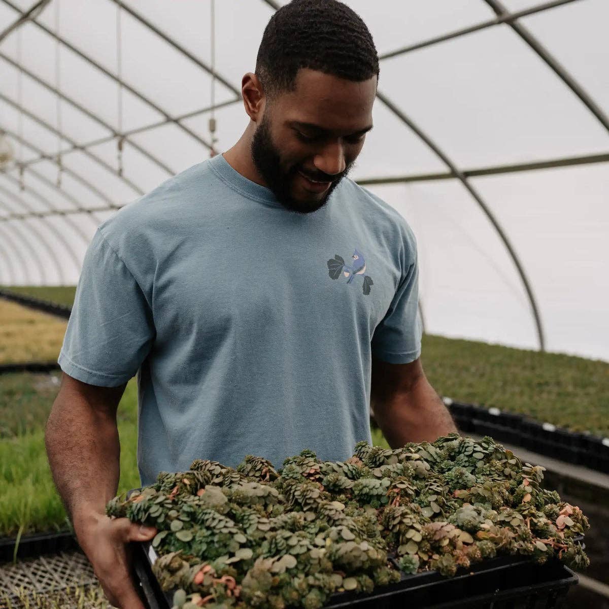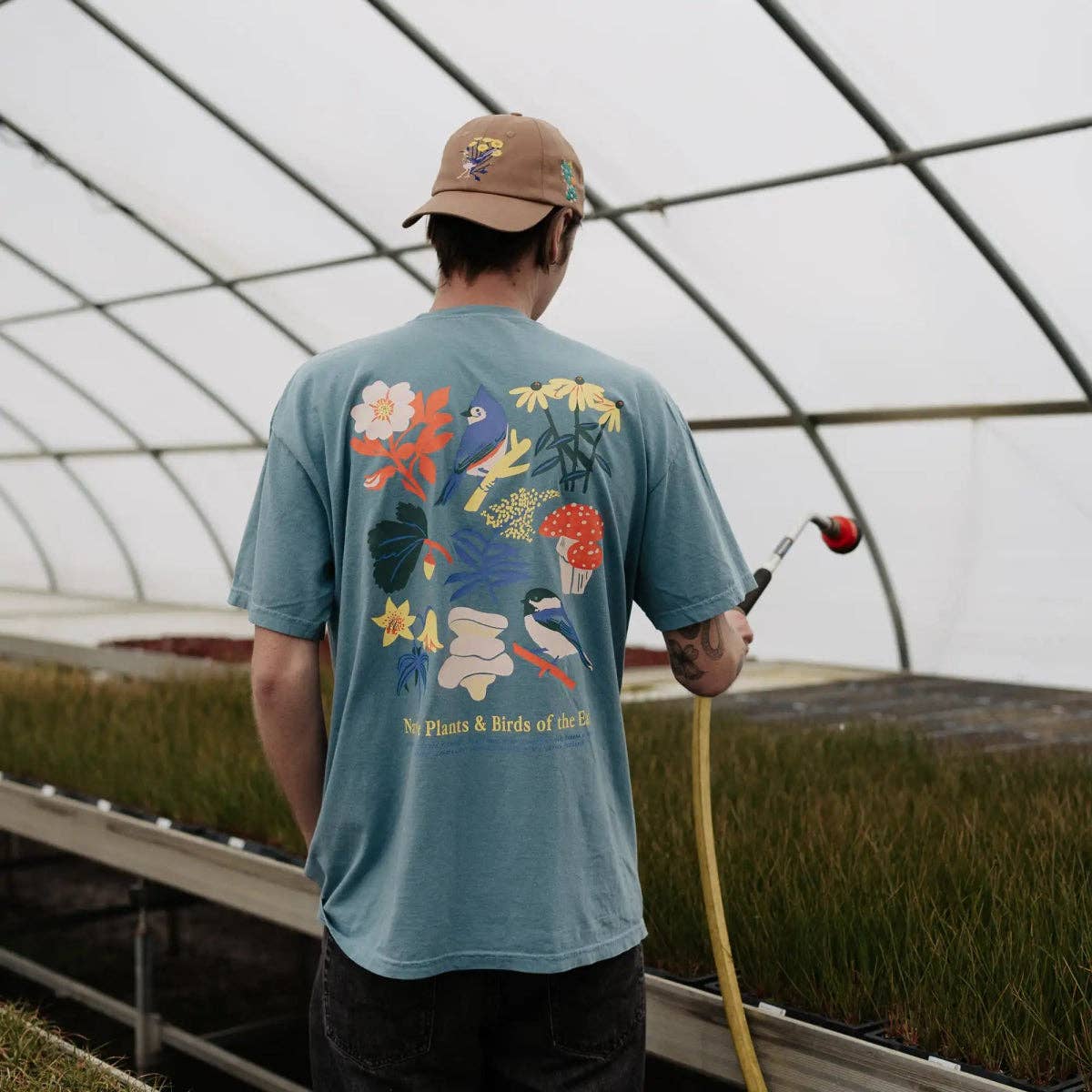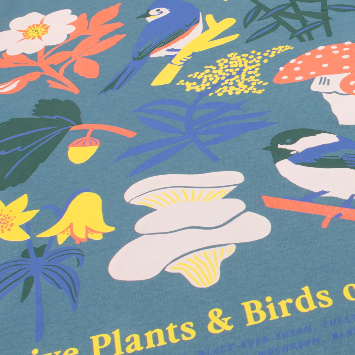 Represent the wild side of the Eastern U.S. with this bold tee, featuring a Black-capped Chickadee and Tufted Titmouse amidst native plants and mushrooms. It's a wearable tribute to the region’s rich biodiversity.