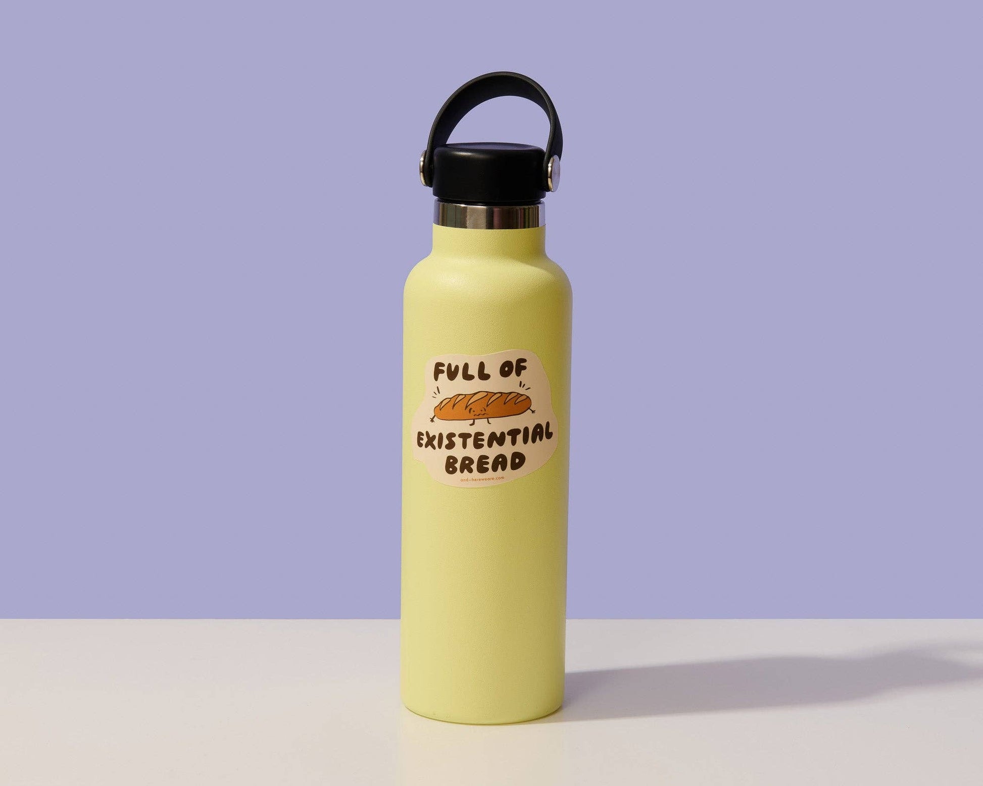 Sticker reads: "Full of existential bread"