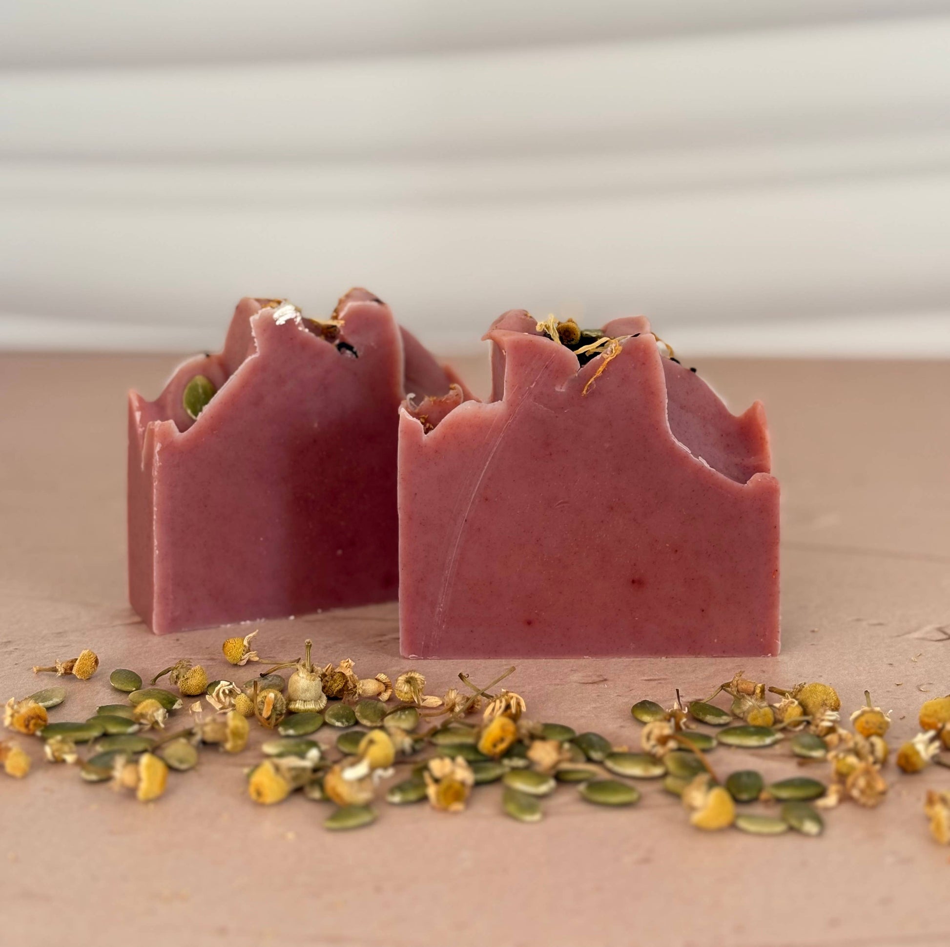 Wrap yourself in the cozy embrace of autumn with Fall Feels, a bar that captures the essence of crisp October mornings and golden foliage. Bright, juicy orange mingles with fresh-cut basil for a scent that's both invigorating and grounding. Each bar is topped with delicate chamomile and calendula petals, infusing a sense of calm and radiance into every lather. Handcrafted with 100% vegan, skin-loving ingredients, this soap brings the warmth of the season right to your skin.