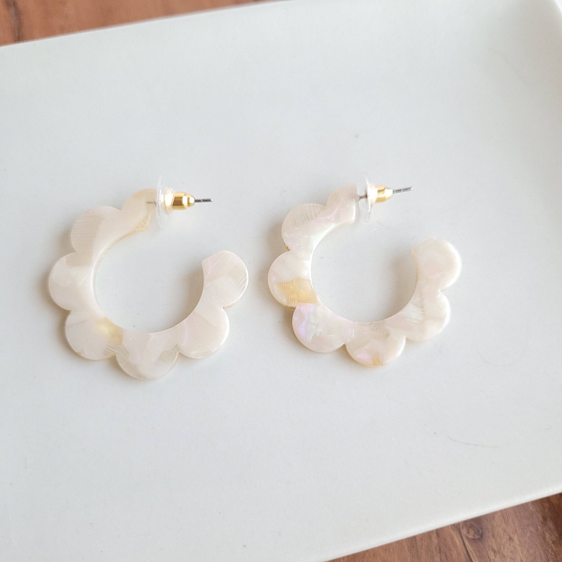 Flora Hoops - Cream // Flower Earrings, Gift, Jewelry