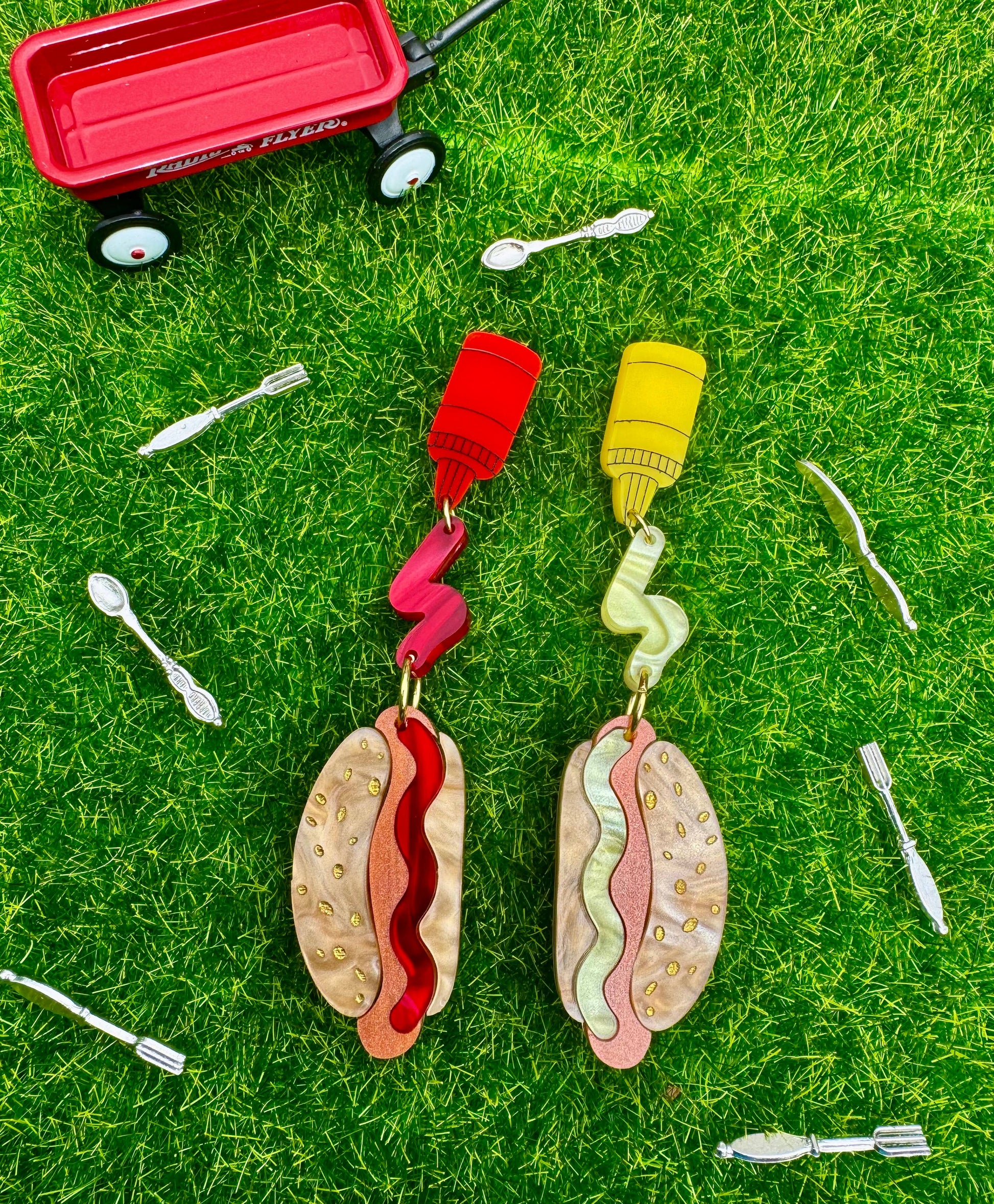 Everyone’s favorite summer meal for your ears! Perfect for all of those summer BBQ’s! Made from an original design and laser-cut acrylic. Each piece is handmade, so slight differences can be expected. These are finished with hypoallergenic, anti-tarnish gold-plated earring posts.