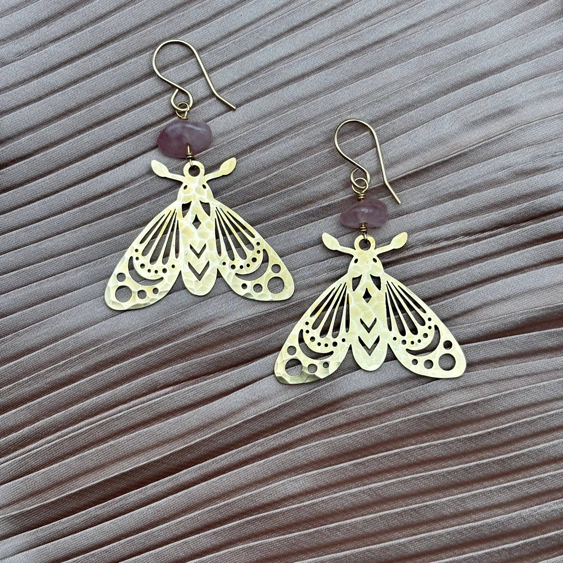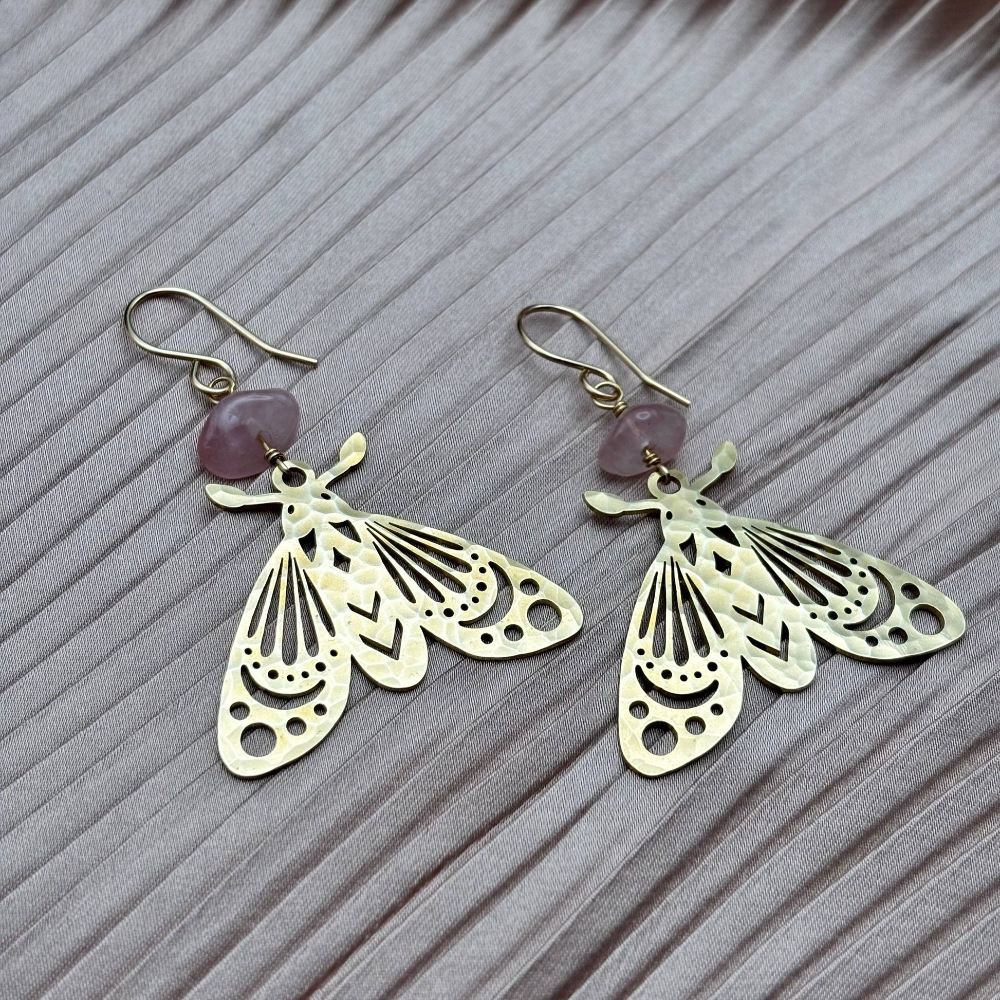 Handmade Anahata Earrings | Moth | Rose Quartz | Nature
