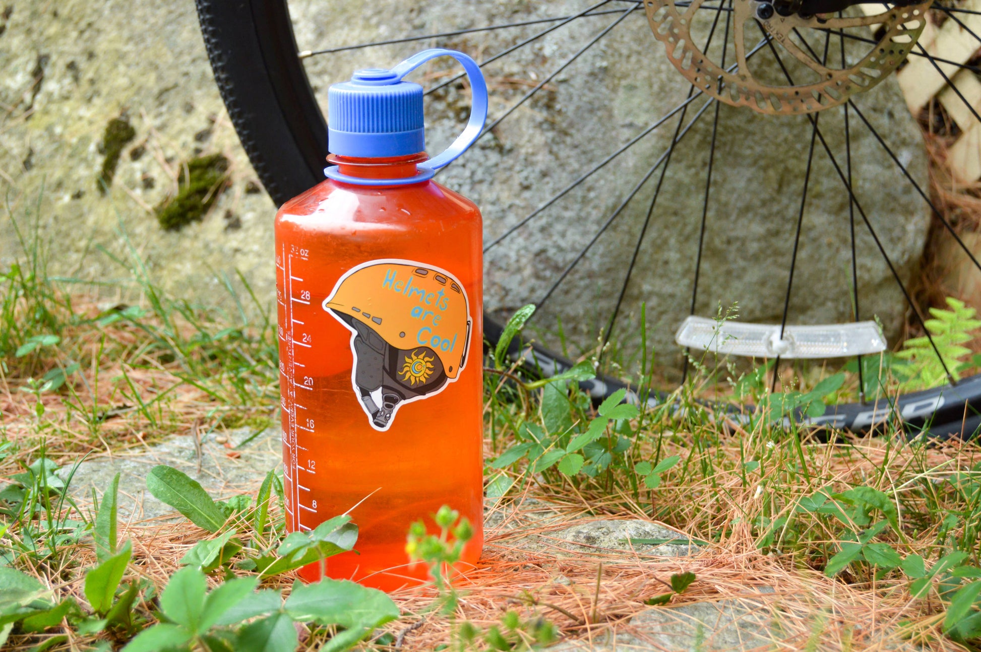 Safety first! Remember to protect your noggin with this design on your laptop, waterbottle, or other gear.