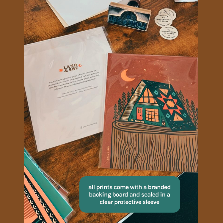 Land & She is made with nature in mind. All of my work is inspired by the outdoors and a sense of peace. My hope for this work is to inspire a moment of pause and reflection to whoever views or interacts with the artwork.