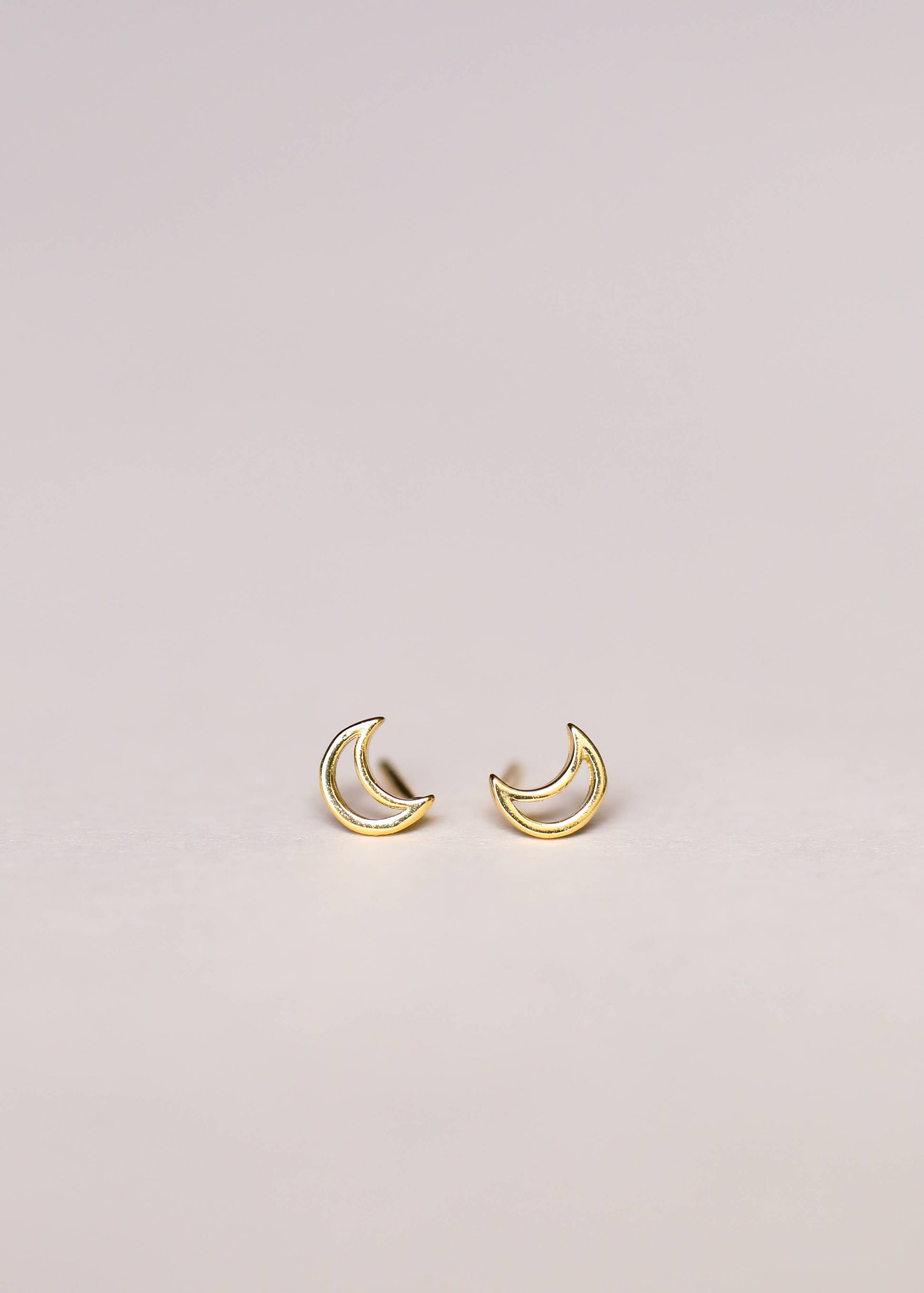 A hollow moon compliments your style on a delicate post for an easy, everyday, wearable look.