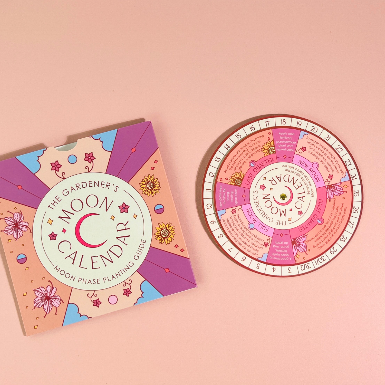 This perpetual moon calendar shows you how to garden by the moon phases. By using the rotating wheel on this calendar, and the moon as your guide, you will be able to see on any given month when to plant, water, fertilize and harvest among other tasks.