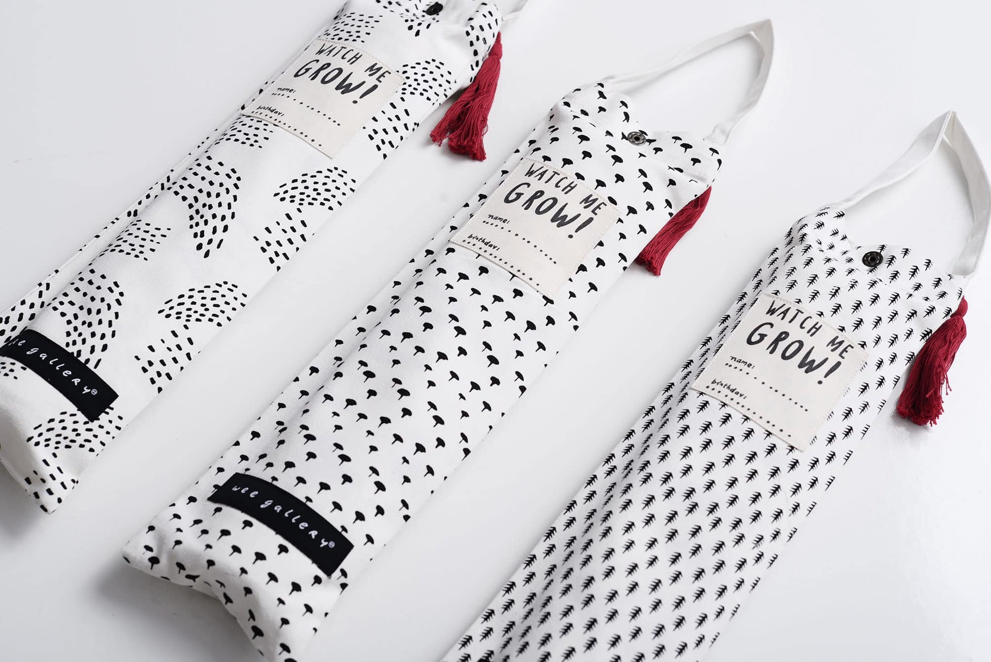 To mark the growth chart, simply write on the canvas with a fine tip marker or fabric pen. Or Download our (free) printable growth chart markers from the Wee Gallery website.