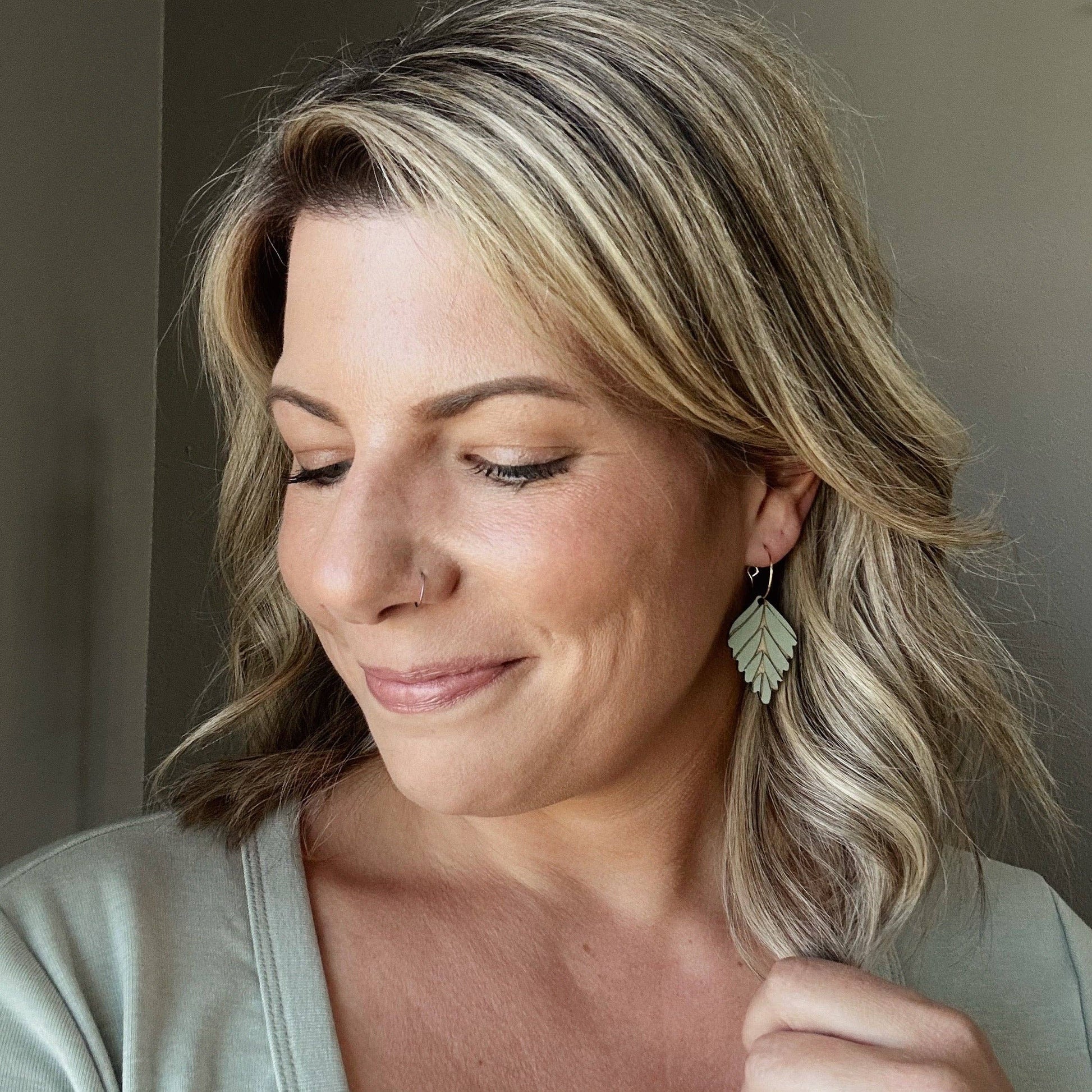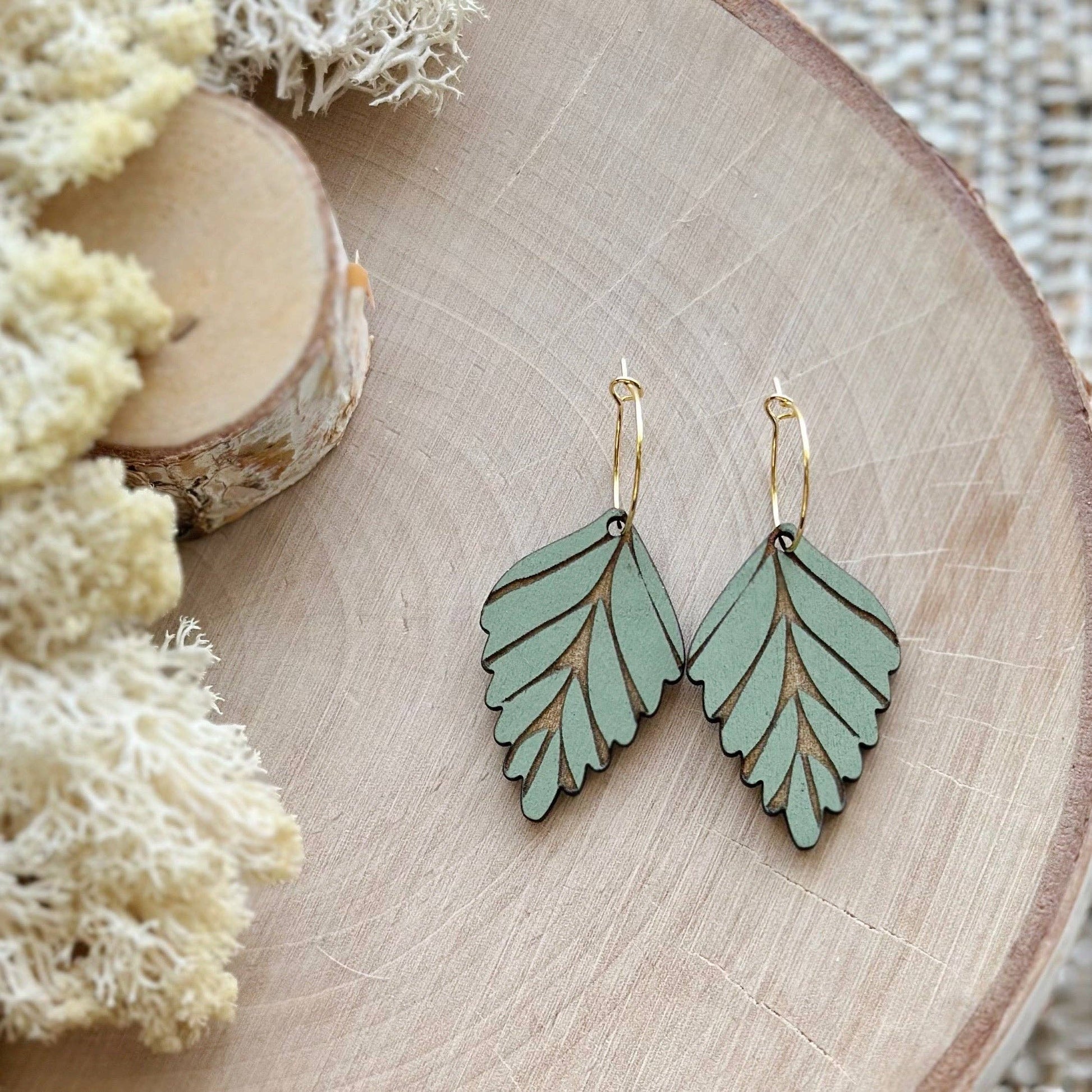 Beautiful golden hoops paired with soft green leaves creates a simple, bold statement.