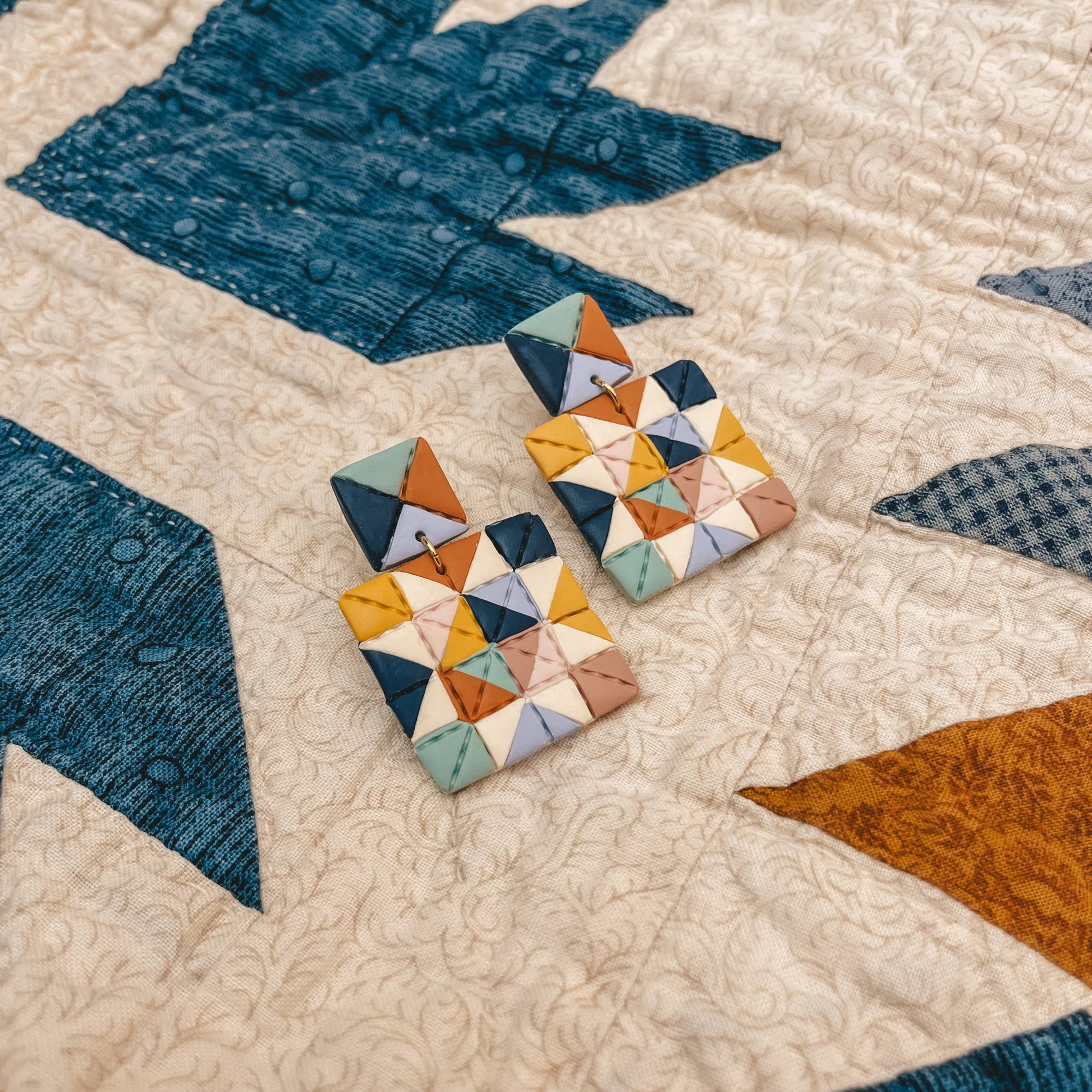 Quilted Style Stud Dangle Earrings | Confetti Block