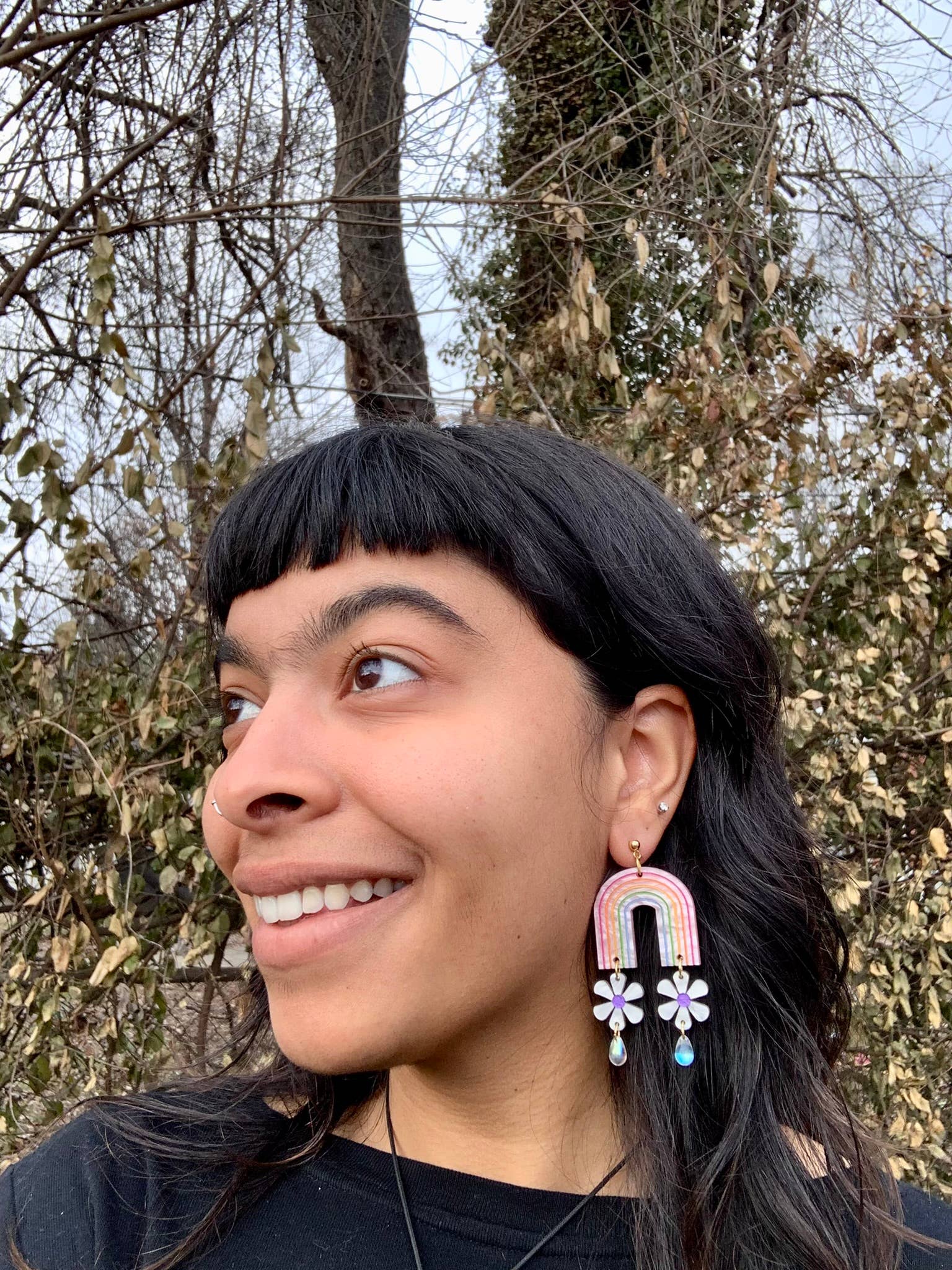 These colorful rainbow earrings are perfect for any occasion! Made from an original design and laser-cut acrylic. Each piece is handmade, so slight differences can be expected. These are finished with hypoallergenic, anti-tarnish gold-plated earring ball posts.