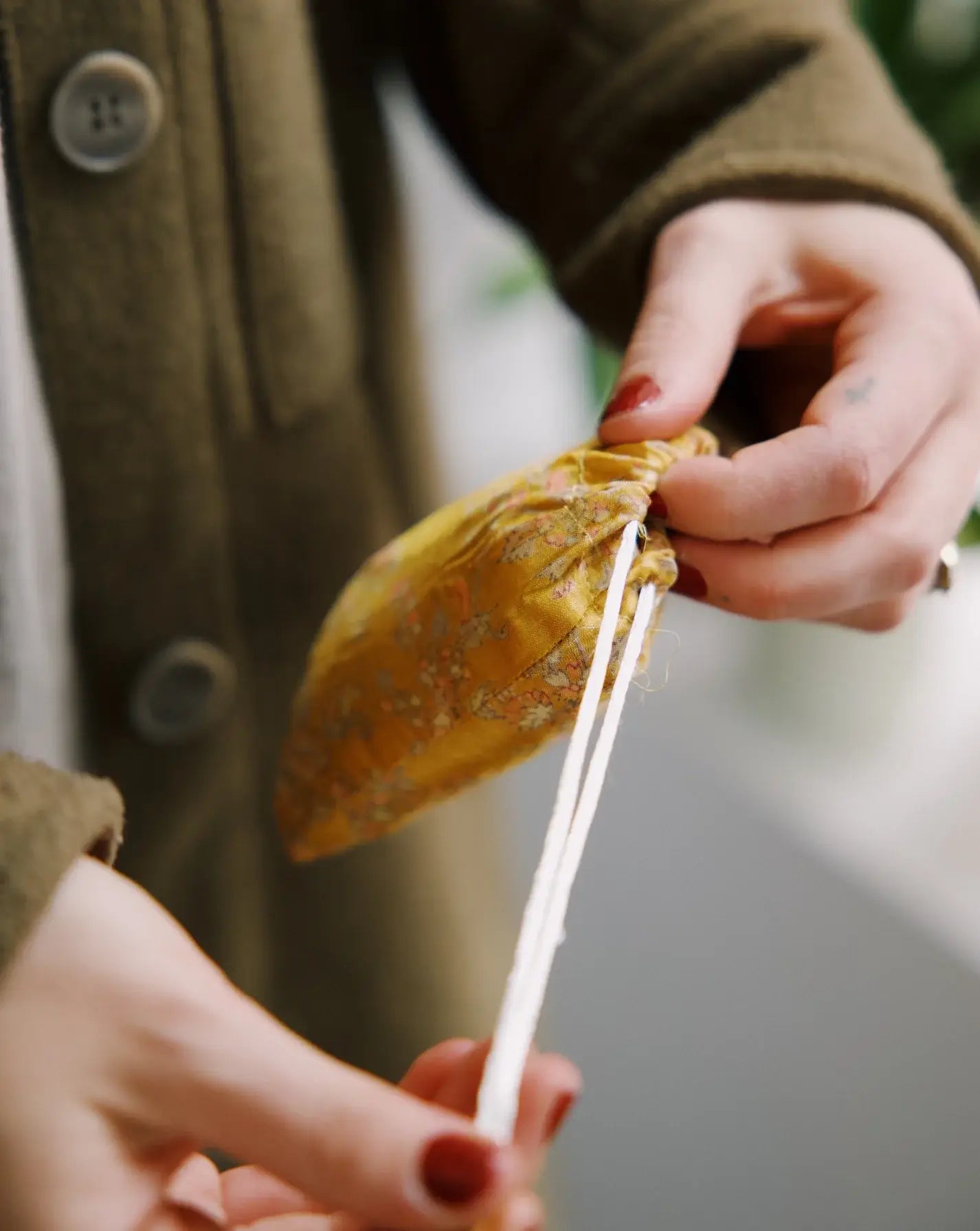 What once was tossed away has now found purpose in your hands. Say good bye to plastic with our grocery/tote bags that are made with beautiful Indian Upcycled Sari Material.