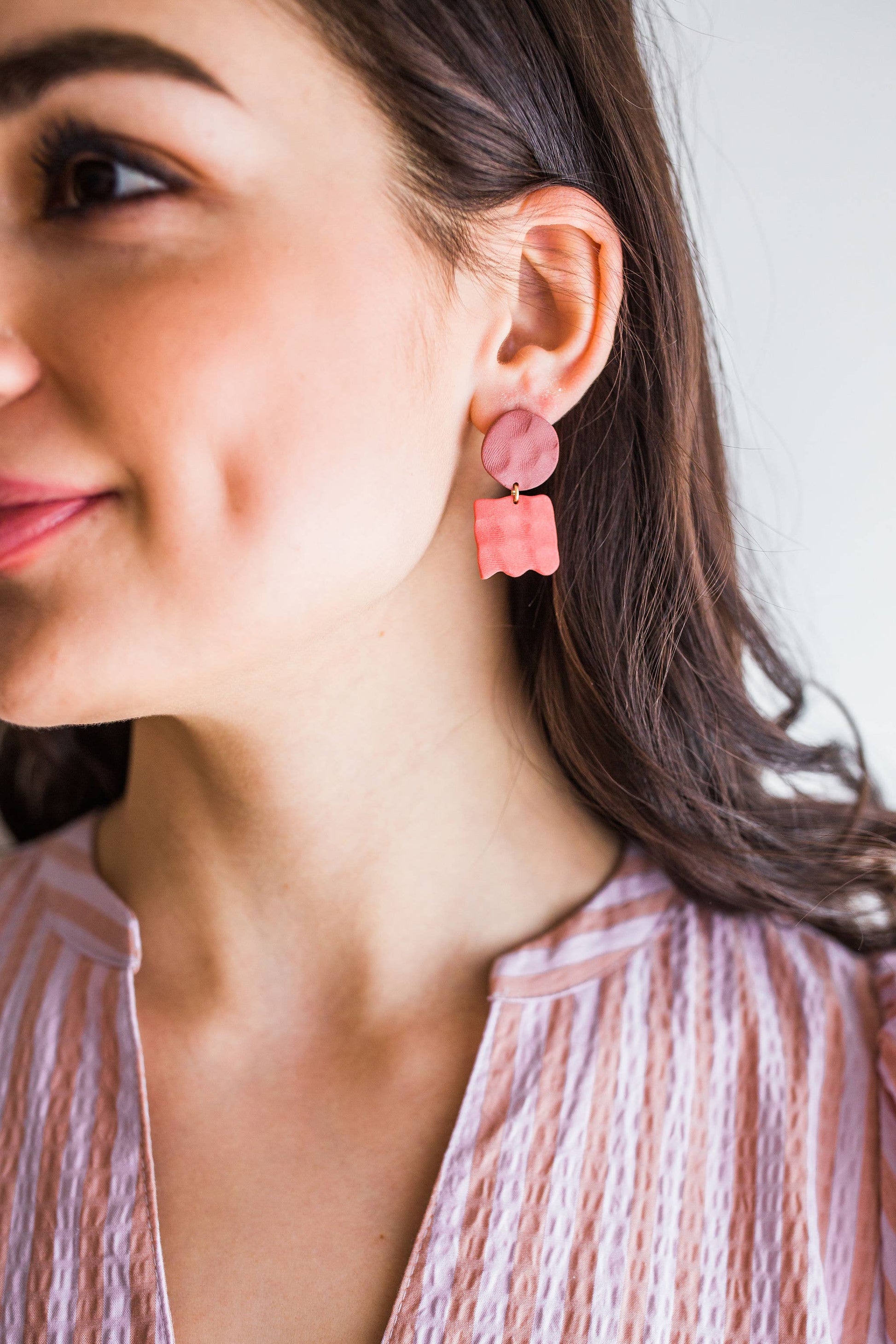 These charming earrings come in 2 color ways: radish and rosemary.