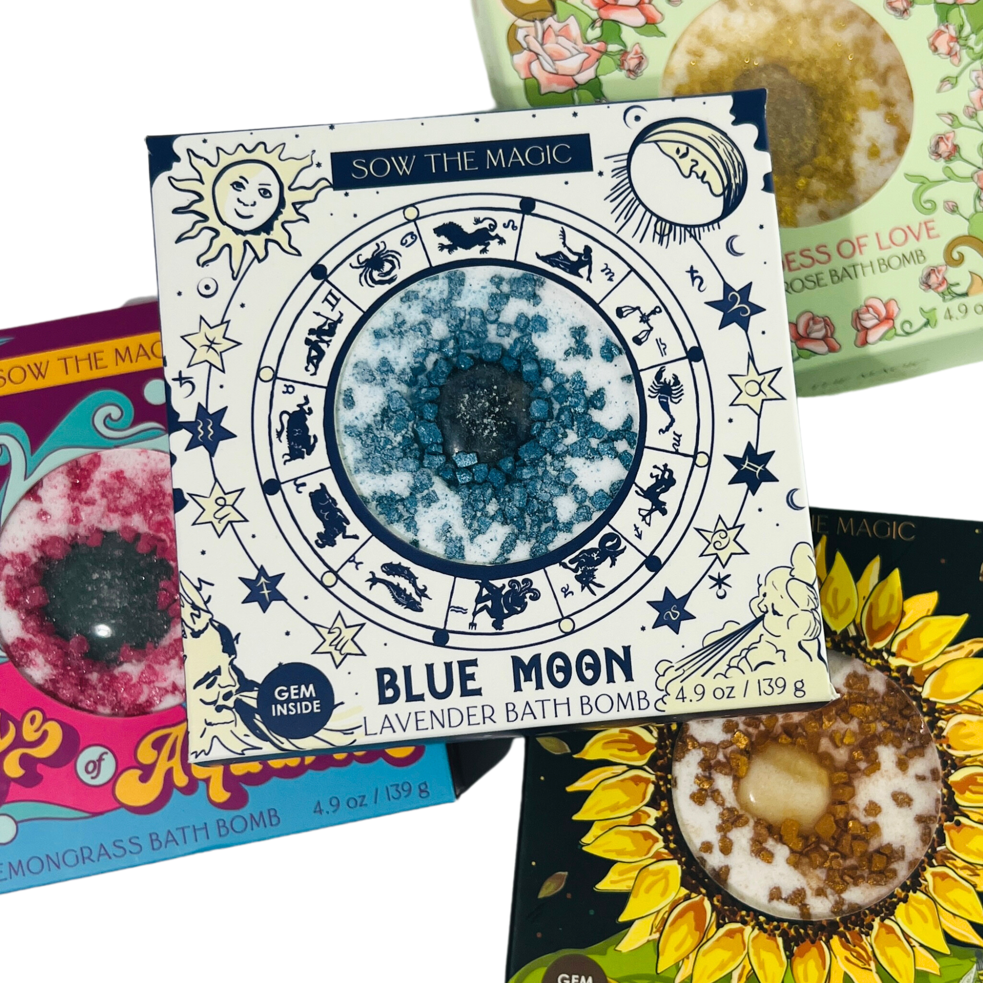 Sunflowers in global folklore are sacred symbols of loyalty as they follow the sun from East to West each day. Unwind and soak away with this honey scented bath bomb featuring Epsom Salt to revive sore muscles. Amber gemstone inside releases bright, soothing energy to calm the mind and soul.