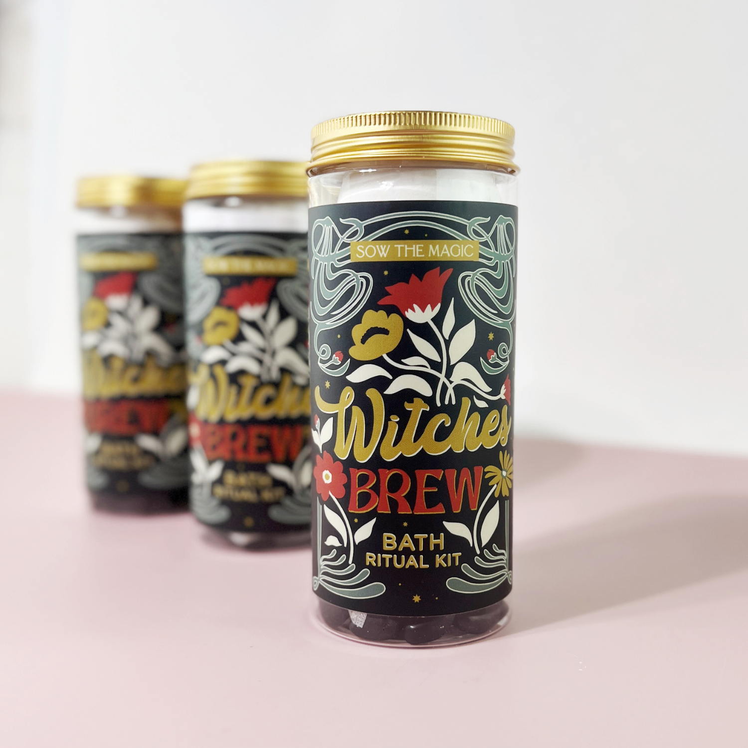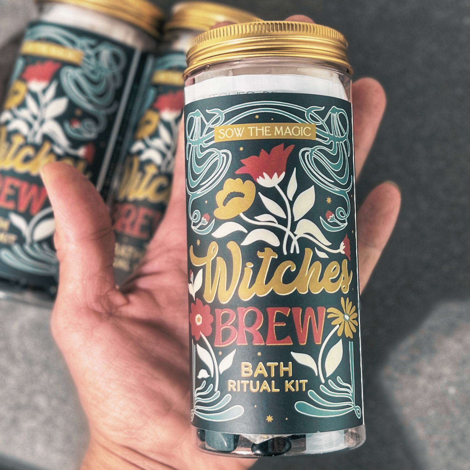 Transform your bath into a mystical ritual with our Witches Brew Bath Ritual Kit. This enchanting kit includes everything you need for a magical, rejuvenating experience: obsidian stones, a herbal tea soak, dried fruit and bath bomb. Each element designed to cleanse, protect, purify and invigorate your spirit.